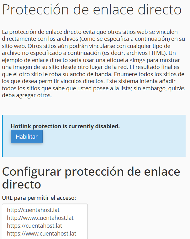 Cómo activar la protección contra hotlinking en cPanel